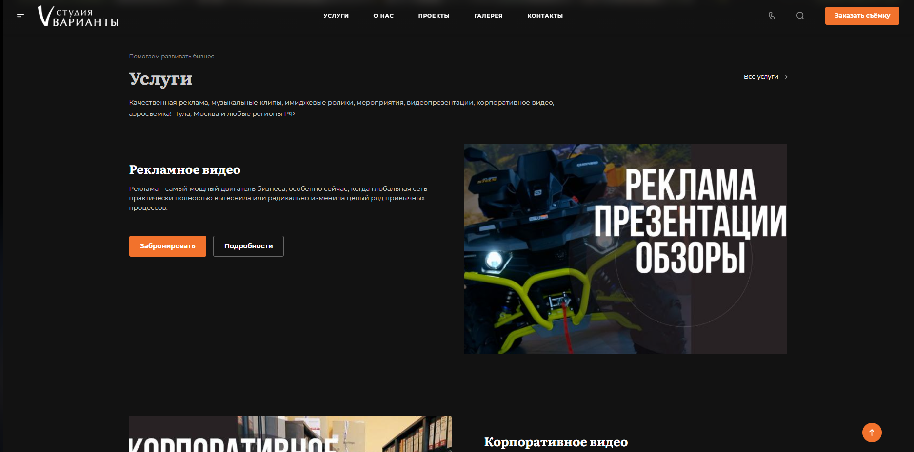 —Разработка сайта на 1с Битрикс для Видеостудии полного цикла Рекламное видео Клипы и концерты под ключ